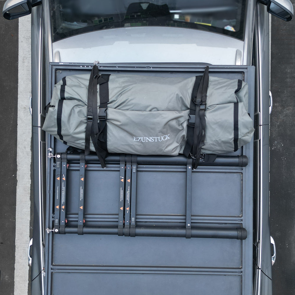 - Flexible Usage: It can be conveniently placed inside your vehicle or mounted atop your EZUNSTUCK rooftop tent. Either way, it's designed to maximize space, ensuring you have ample room inside your car.